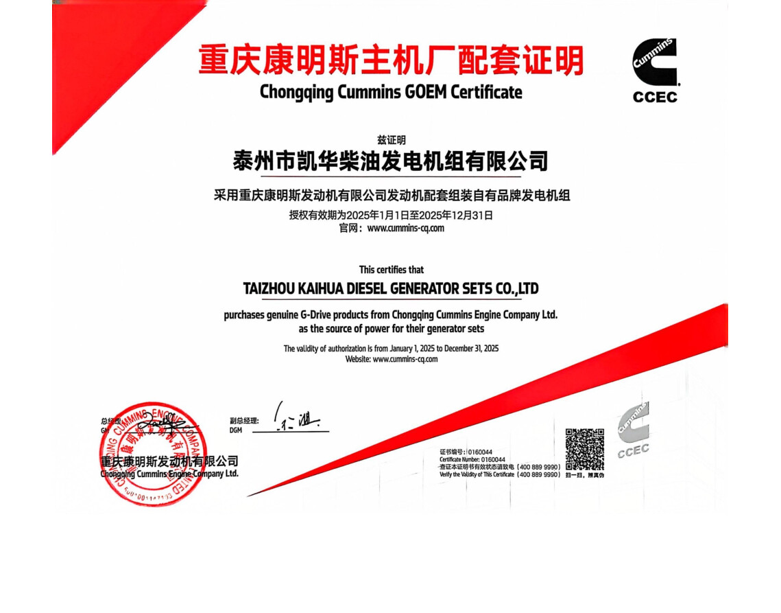 A Kaihua atua como OEM para marcas renomadas como Cummins, Stamford, Marathon e Weichai, e mantém boa cooperação com marcas internacionais como MTU, Volvo e Perkins. A empresa oferece uma gama de produtos, incluindo estações de energia móveis de 15 a 750 KVA, conjuntos geradores para uso terrestre de 3 a 3.750 KVA e conjuntos geradores marítimos de 12 a 1.250 KVA, capazes de atender diversas necessidades de tensão, frequência, insonorização, operação multi-paralela e geração de energia a gás.
